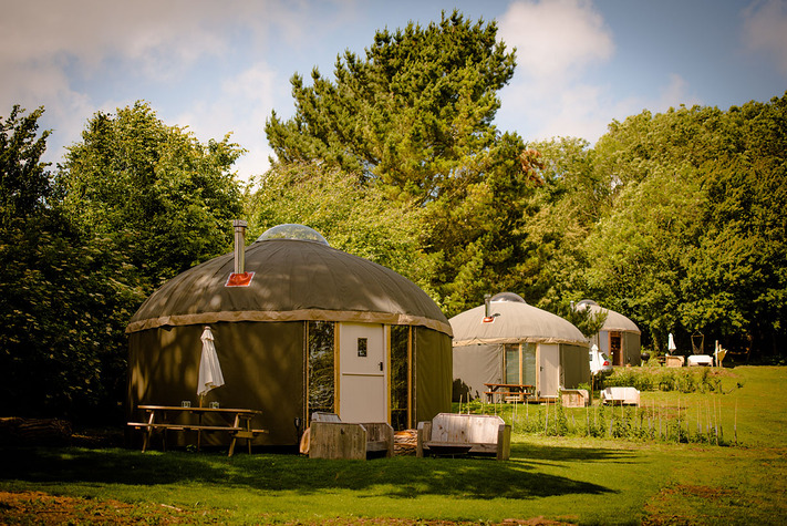 The yurts are surrounded by nature and guests have access to the surrounding large gardens as well as the private Priory Bay beach.