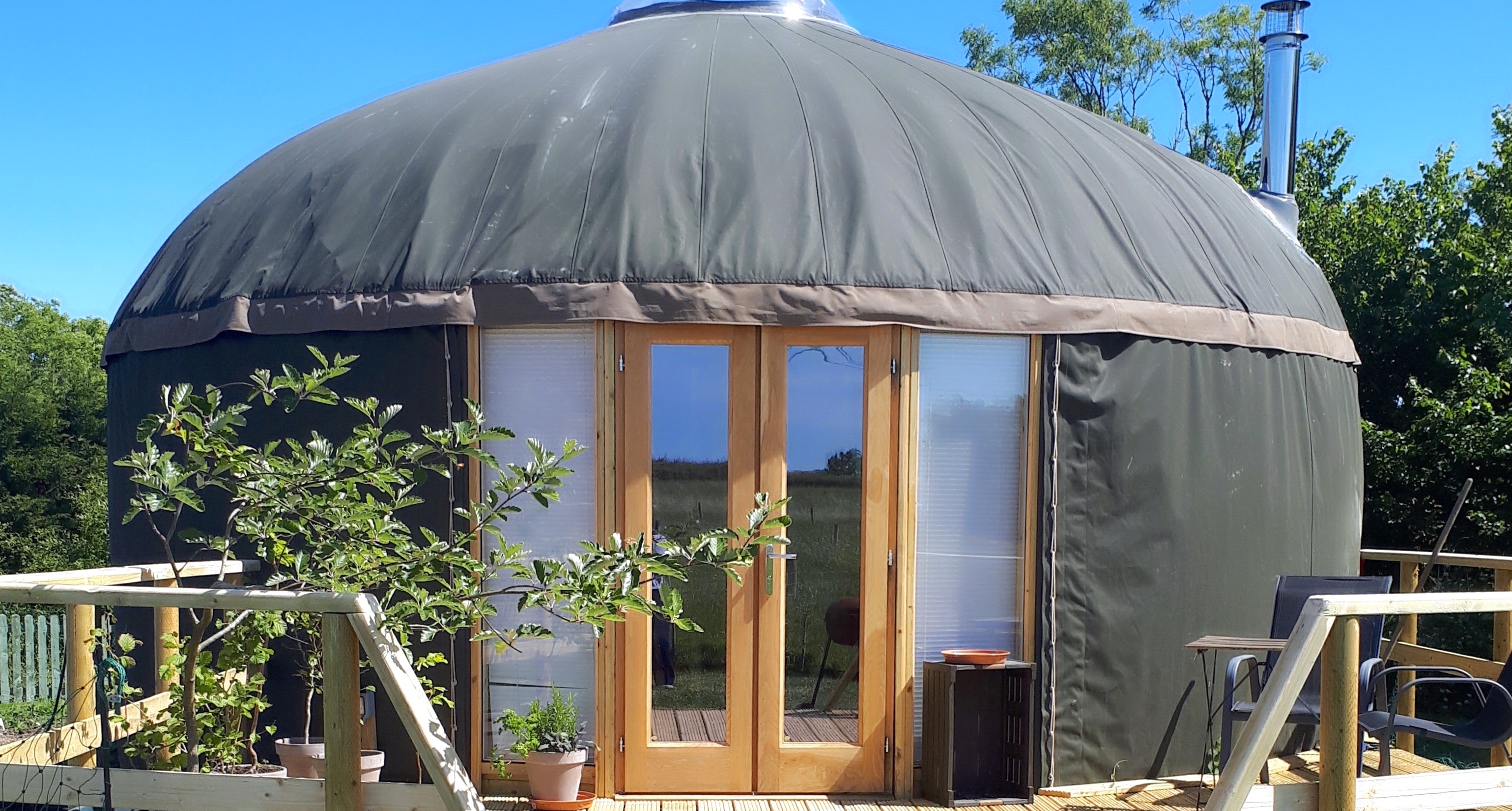 The Yurt is available all year round as it features gas central heating as well as a log burner, it is warm and cosy every day of the year.